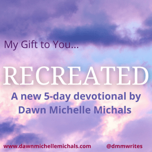 Sign up at this link, and you’ll receive my newest 5-day devotional–RECREATED–as my gift to you! And when you sign up, don’t forget to tell me your birthday. You’ll get a special gift from me then too!